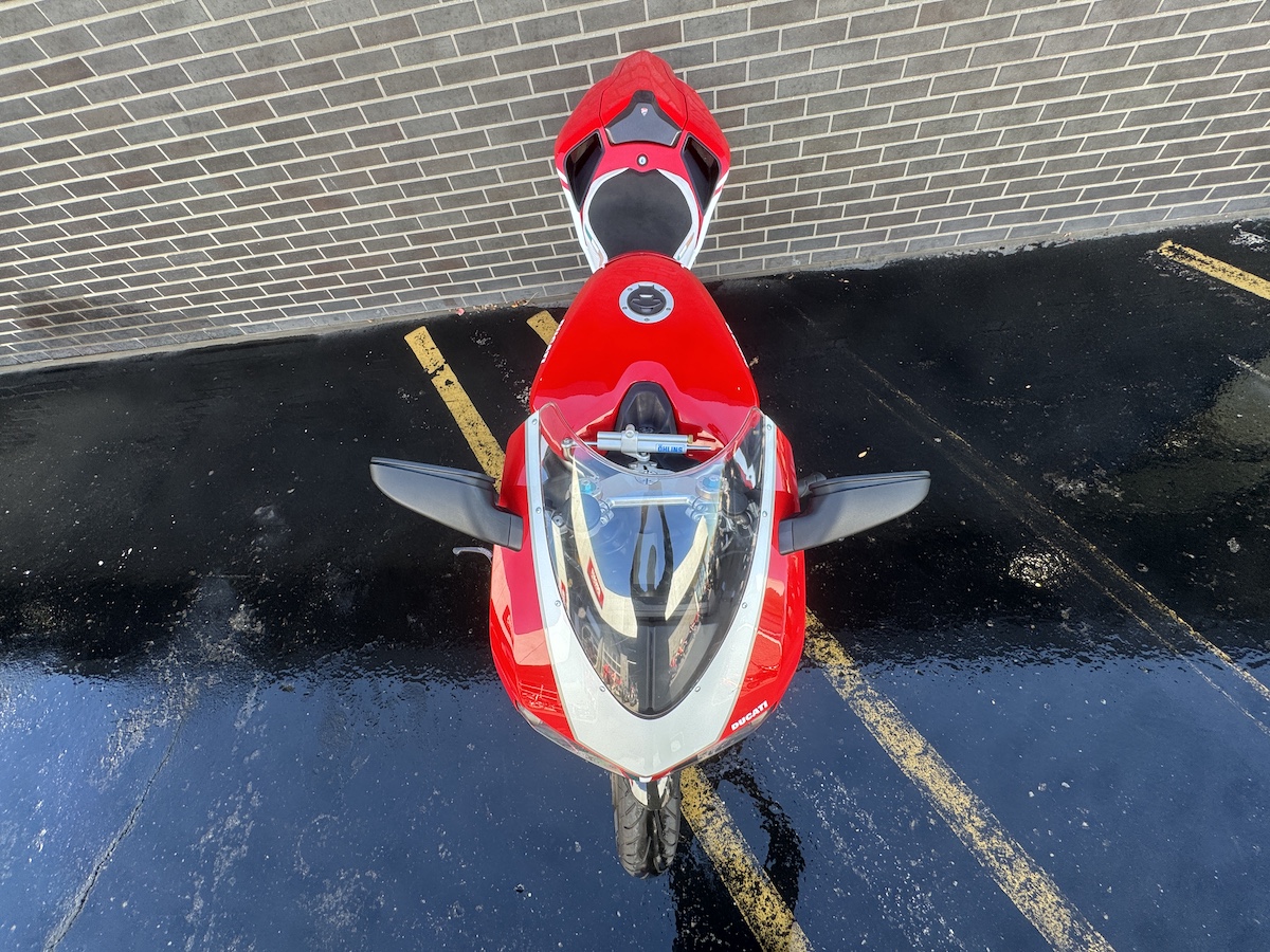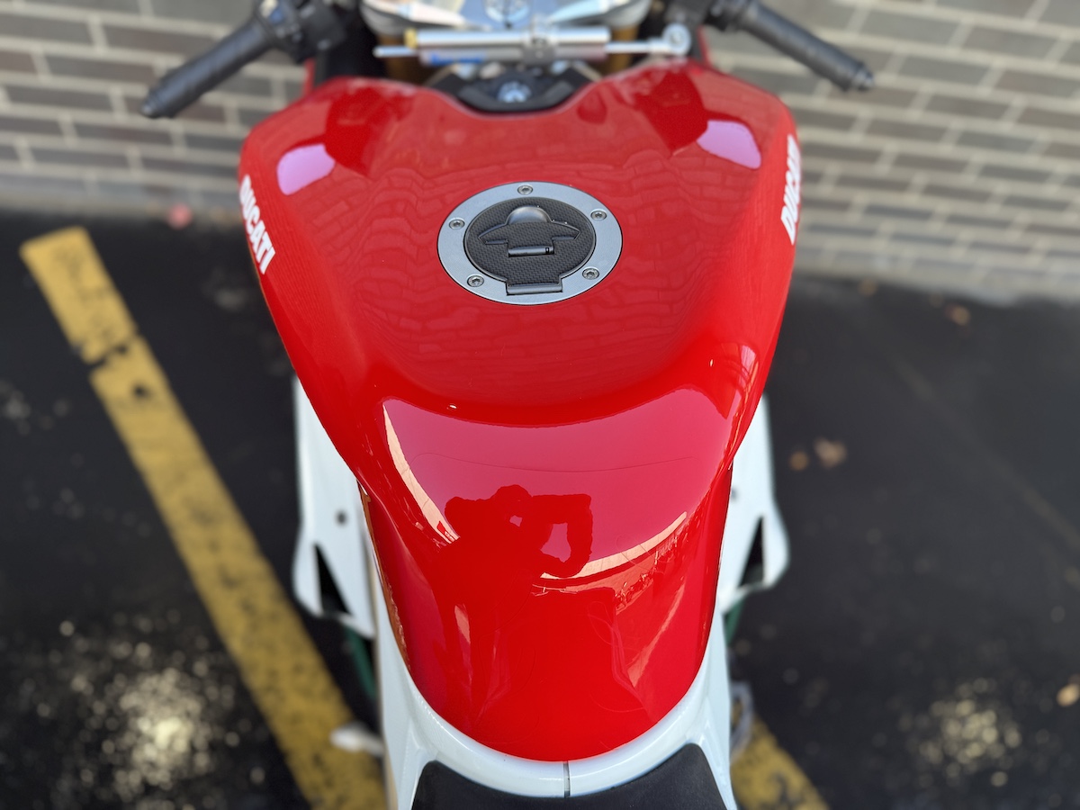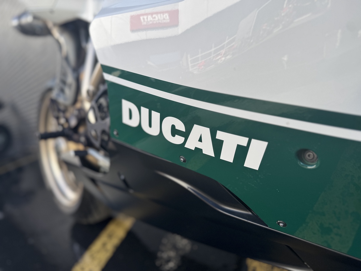 Ducati Detroit has exclusively serviced this motorcycle since 2013. Owners have all been Ducati enthusiasts of the highest order. The OEM bodywork and paint are in excellent condition for it’s age and mileage. OEM upper side panel has been painted in Ducati white to continue the white side stripe from the fairing to the tail.