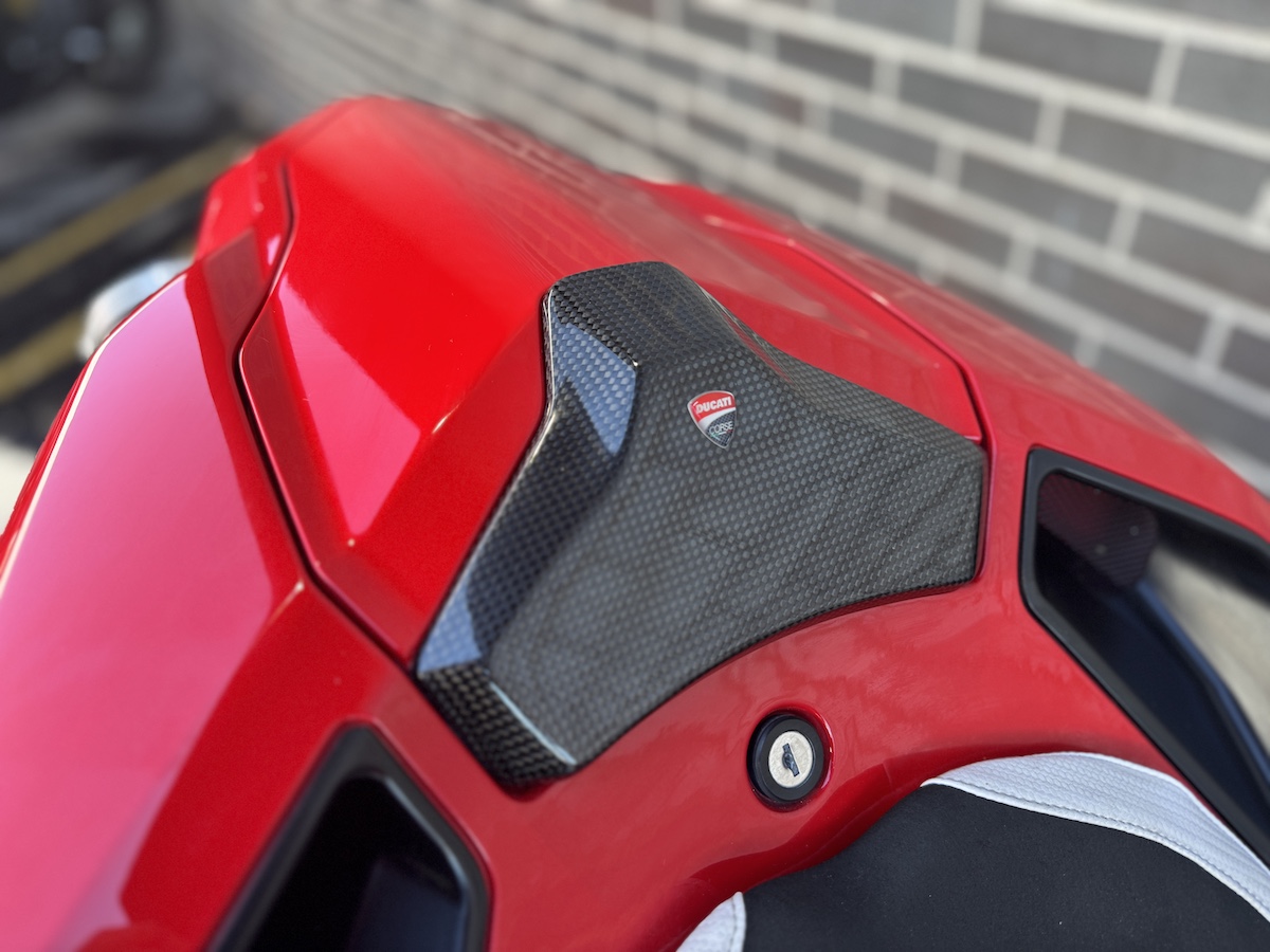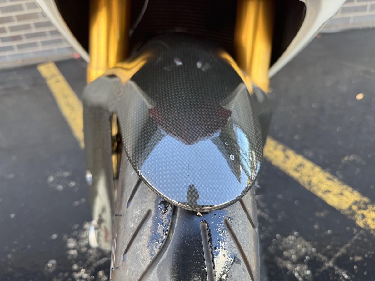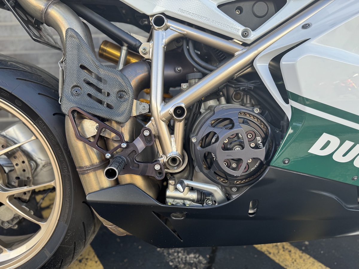 Ducati Detroit has exclusively serviced this motorcycle since 2013. Owners have all been Ducati enthusiasts of the highest order. The OEM bodywork and paint are in excellent condition for it’s age and mileage. OEM upper side panel has been painted in Ducati white to continue the white side stripe from the fairing to the tail.