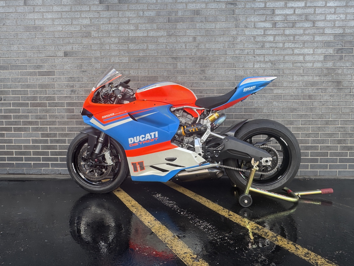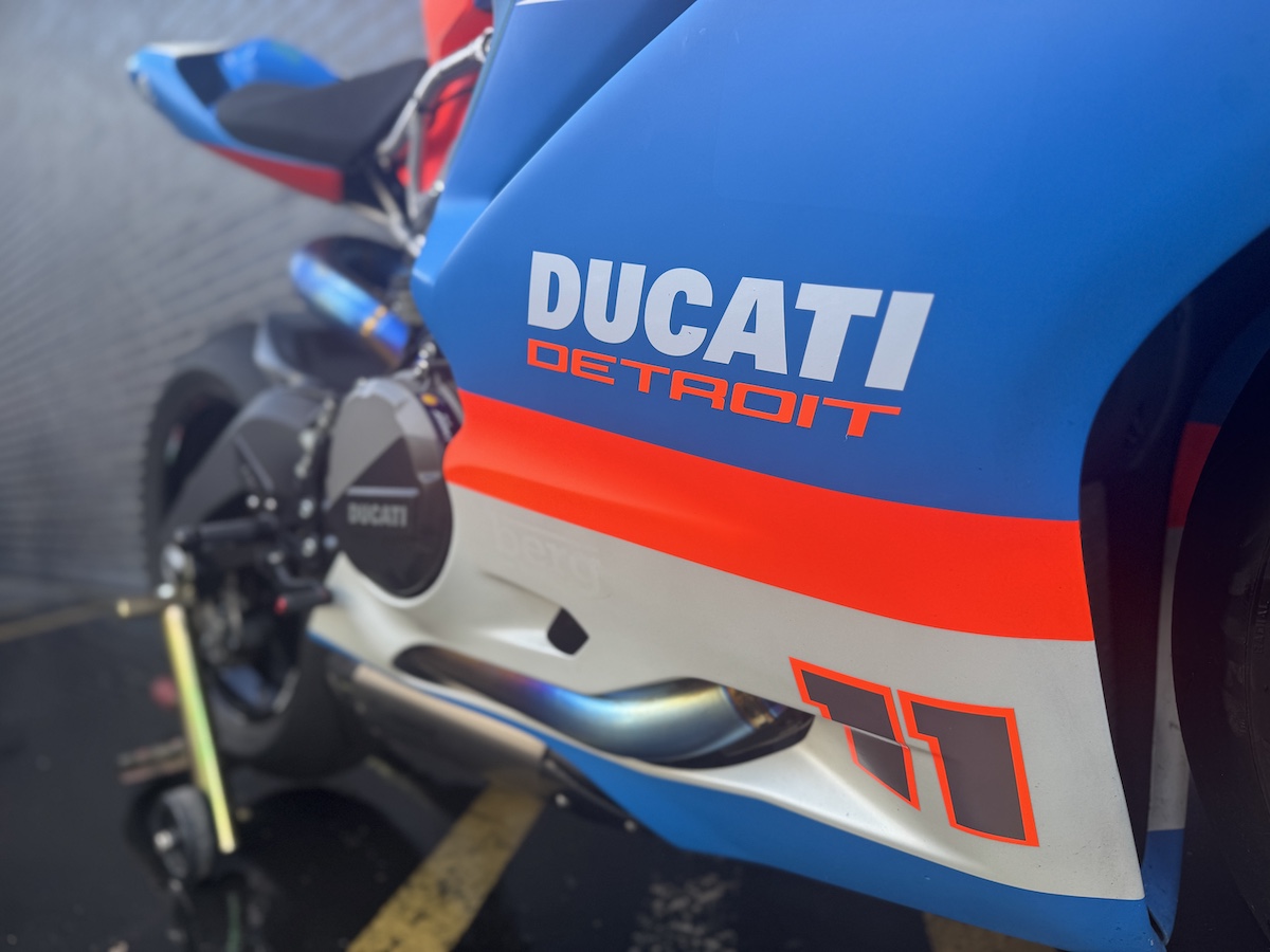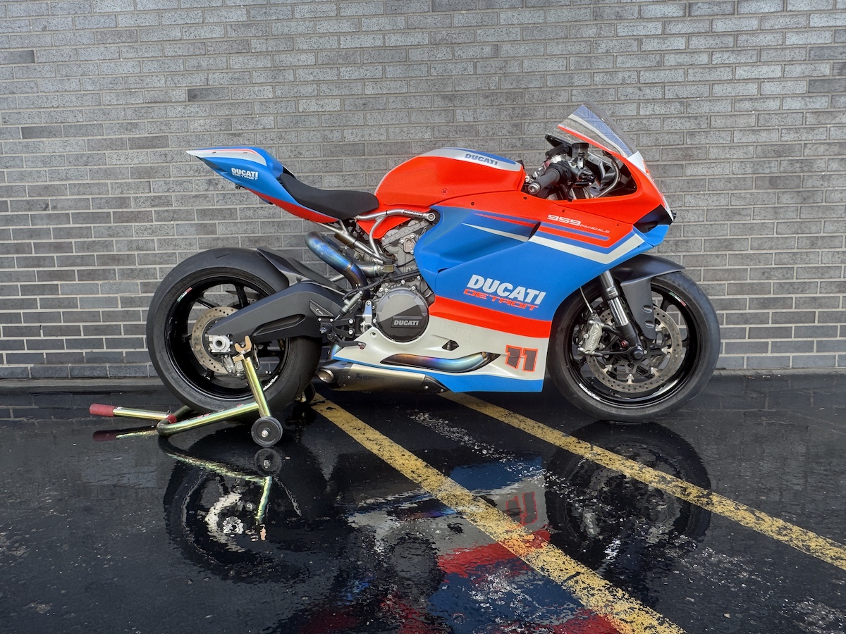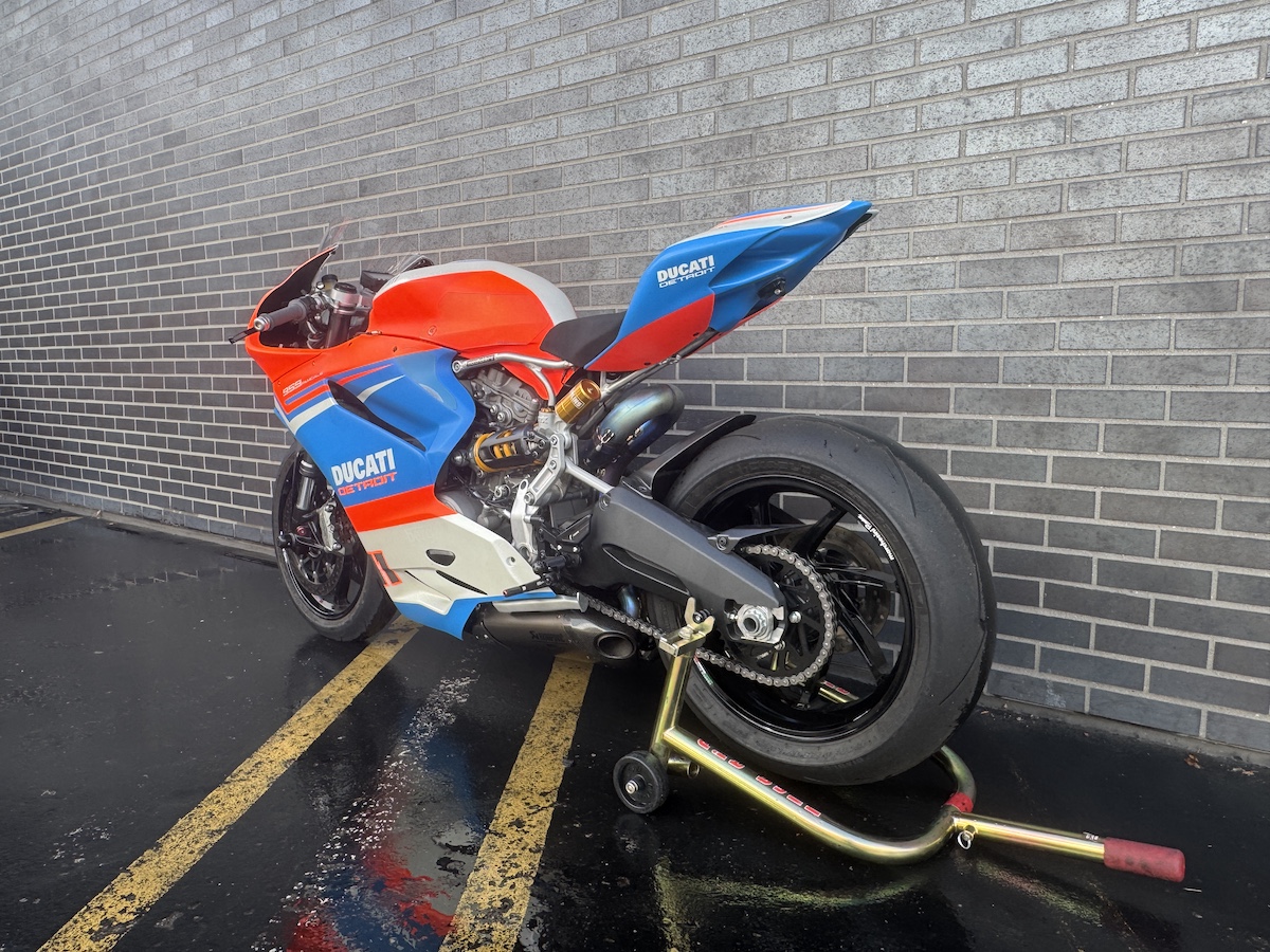 This stunning motorcycle was built in-house by Ducati Detroit’s master techs during an era when Ducati Detroit was actively racing the Panigale 959 and Panigale R machines to multiple National Championship victories.  Built for one of our top clients who was an Intermediate group track rider, no expenses were spared during this build.  The paint job alone was over $3K, using a Lamborghini blue and Ducati’s 1199 Superleggera fluroescent paint, finished in satin clear coat.  This motorcycle has never been raced, only used at track days.